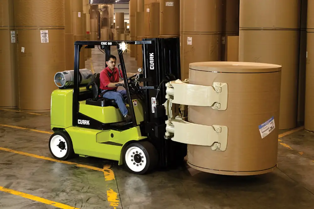 The CLARK CGC40 series comes equipped with a fully adjustable, full-suspension seat, molded for support with a non-cinching, retractable seat belt. The tilt steering column can be adjusted to suit the operator and provides easier exit/entry. Finally, the thick molded floor mats are designed to reduce vibration and noise level to improve operator comfort.